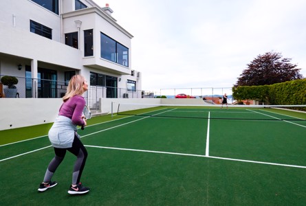 Beneath the Lake Villa, this contemporary and functional two-bedroom apartment enjoys spectacular views over the tennis court to the city and glimpses of the lake. This self-contained apartment is light, bright and airy. If offers spacious living suitable for two couples or a family of four. Each bedroom has a large separate bathroom where you can soak in the spa bath or choose to relax in the hot tub in the courtyard.