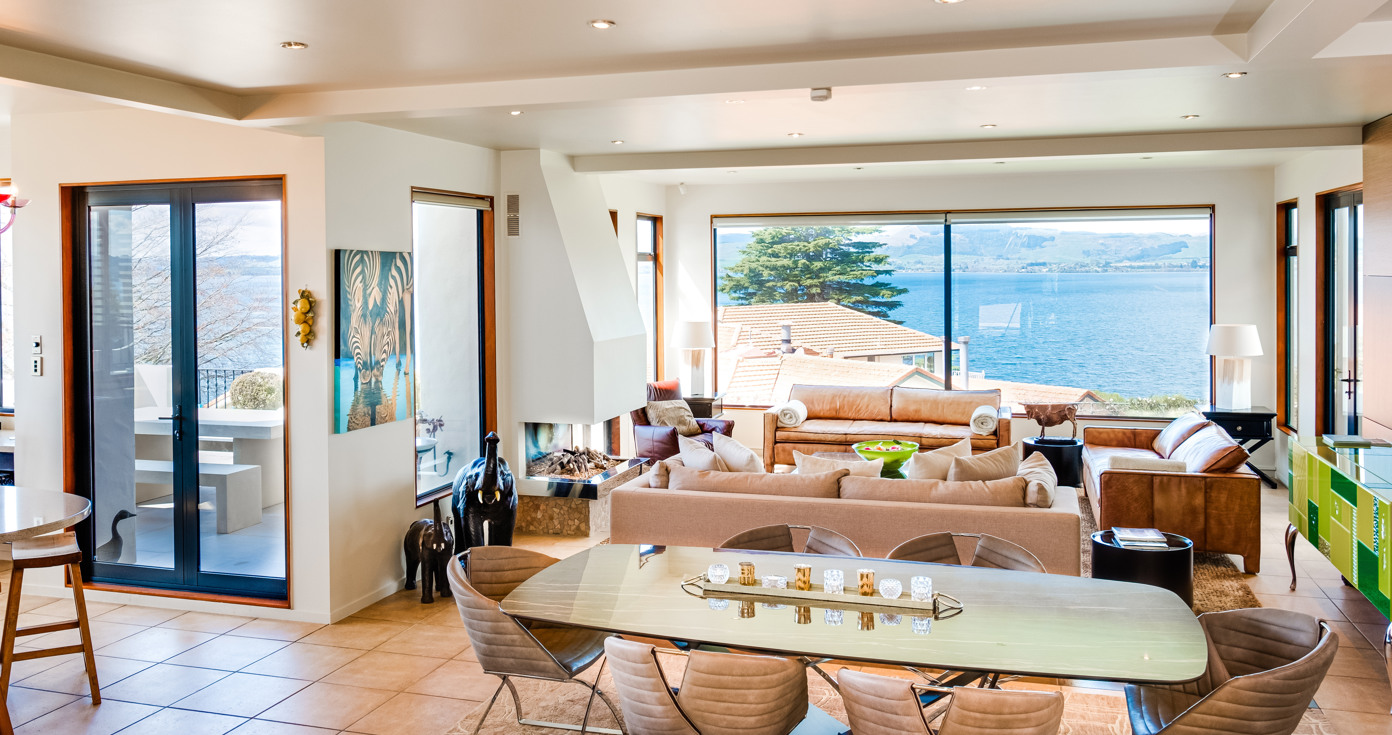 Discover the Lake Villa is the owner's residence which sits above the lodge. From here, guests enjoy the very best of Rotorua lake and city views. This open plan luxury villa is a real treat for families or groups looking for a private space to come together and stay in Rotorua.