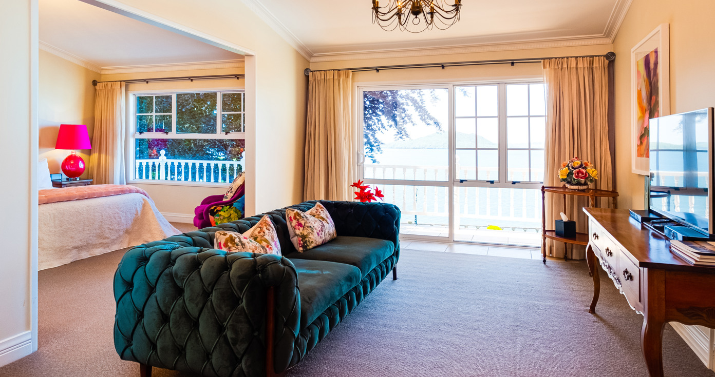 The Main Suite is the most expansive suite in our Rotorua boutique accommodation. With a super king bed, ensuite with spa bath, separate dressing room, and study - everything finds its place here. From the sweeping lake views to the sun-soaked balcony, this is where tranquillity doesn't need an invitation.